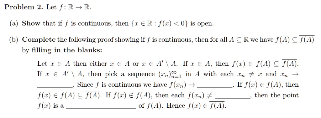 Source: https://www.numerade.com/ask/question/problem-let-f-r-r-show-that-if-f-is-continuous-then-r-fr-0-is-open-complete-the-following-proof-showing-if-f-is-continuous-then-for-all-a-r-we-have-f-fa-by-filling-in-the-blanks-let-e-t-then-65818/